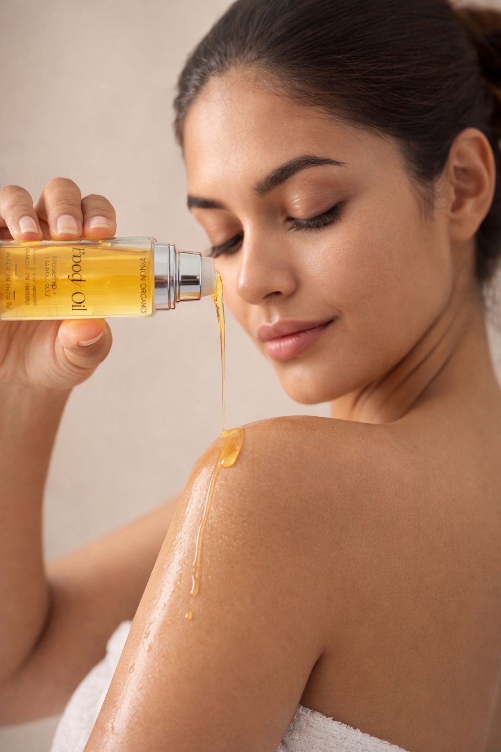 The blend is enriched with Carrot Oil, Wheat Germ Oil, Argan Oil, and Jojoba Oil to deeply nourish and moisturize without feeling greasy. Vitamin E provides antioxidant protection, while Collagen and Elastin help support skin firmness and elasticity for a healthier, more refined look.